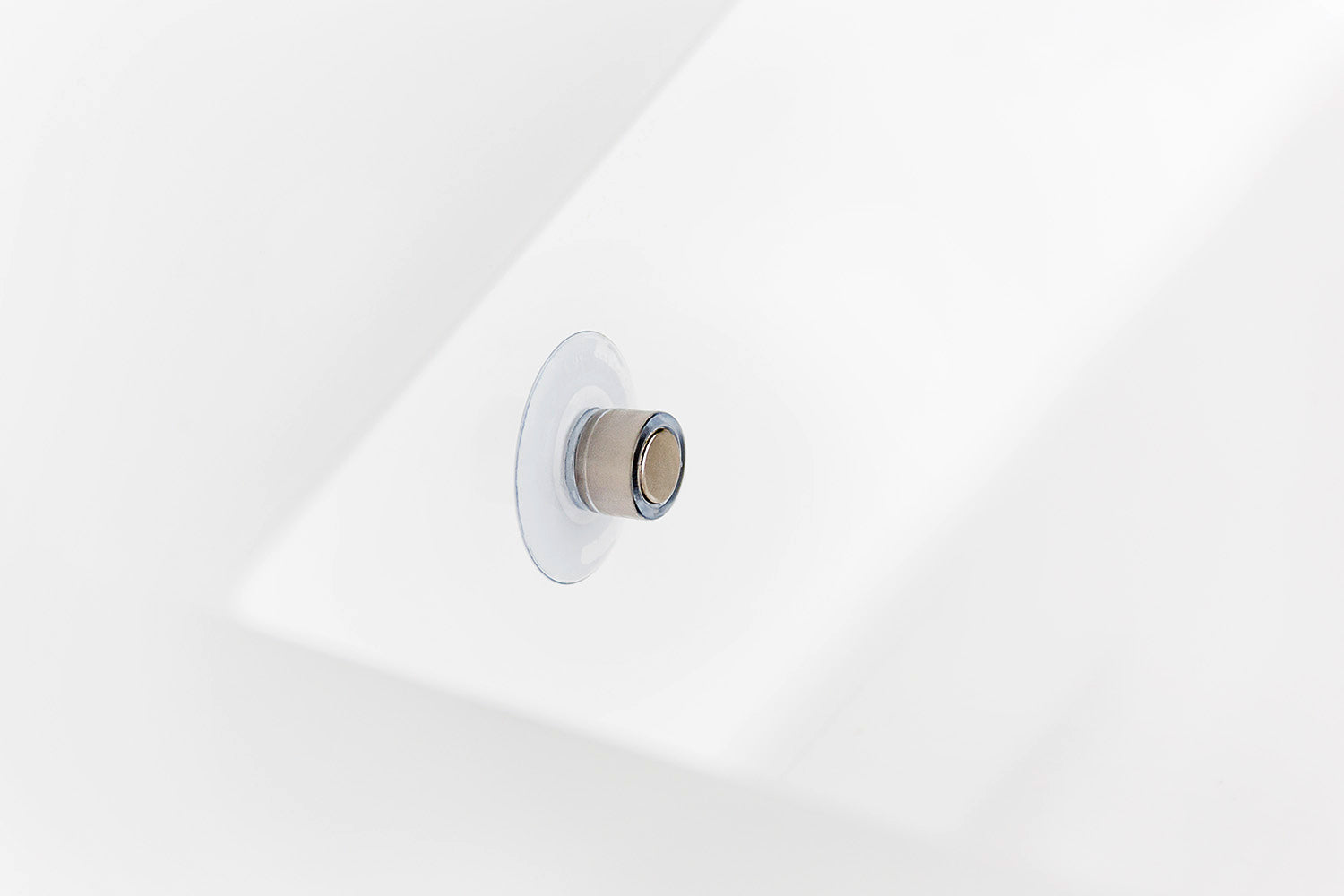 SAVONT is the first soap holder that allows you to store solid soaps directly inside the sink. It attaches with a suction cup without drilling or gluing. The soap is suspended by a magnet and dries completely inside the washbasin. Soapsuds flow directly into the sink. Use the same method to attach the soap holder in the shower or bathtub. See video